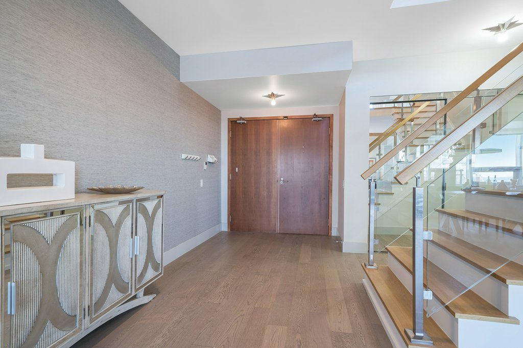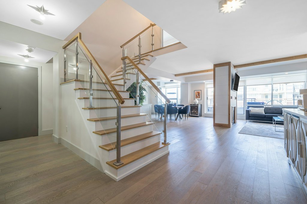 Welcome to the penthouse at 500 Queens Quay West located in the heart of Toronto’s highly sought after waterfront neighbourhood! This rare extensively renovated 3 bedroom 2-storey sun-lit spacious suite has abundant storage & incredible lake views from its generous 183 sq ft terrace. Double-entry doors lead to stunning open concept modern living space 2,280 sq ft. Upgraded Caesarstone kitchen/bath counters, Hunter Douglas blinds, gas f/p. Fusion flrs t/o, reclaimed beam ceilings, custom kit.cabinetry, s&s fridge, induction stove, b-in microwave, bosch d/w, custom blackout drapes, his & hers walk-in closets, Toto washlet toilet, double sink walnut vanity, jacuzzi soaker tub.